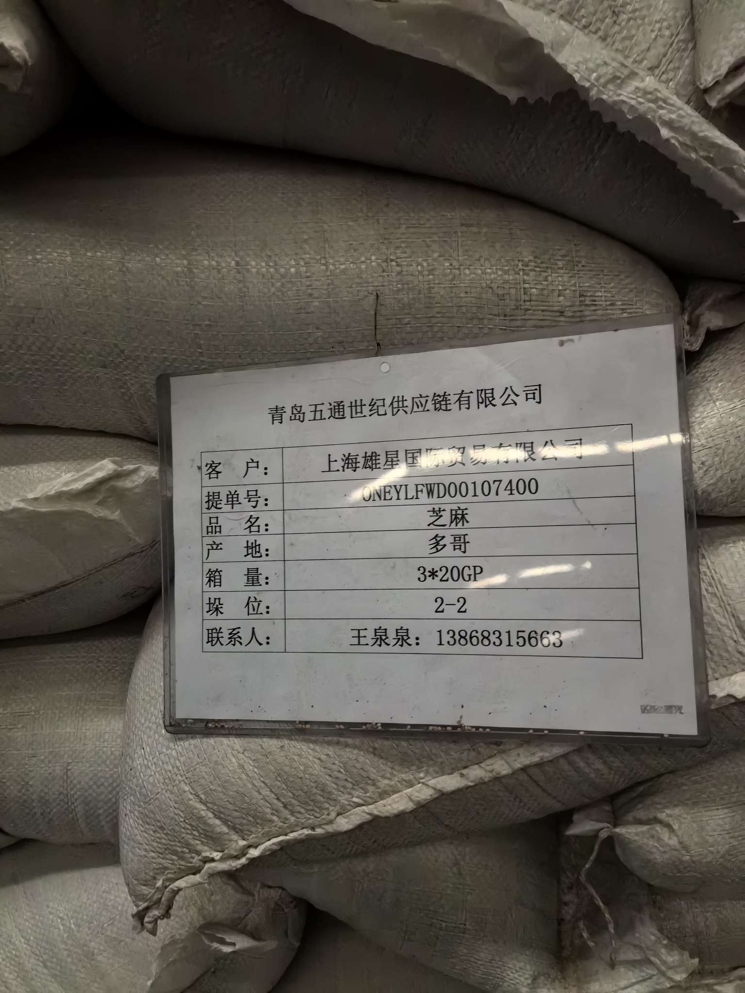 白袋中国青岛二号交割仓多哥一级白芝麻 ¥9500.00