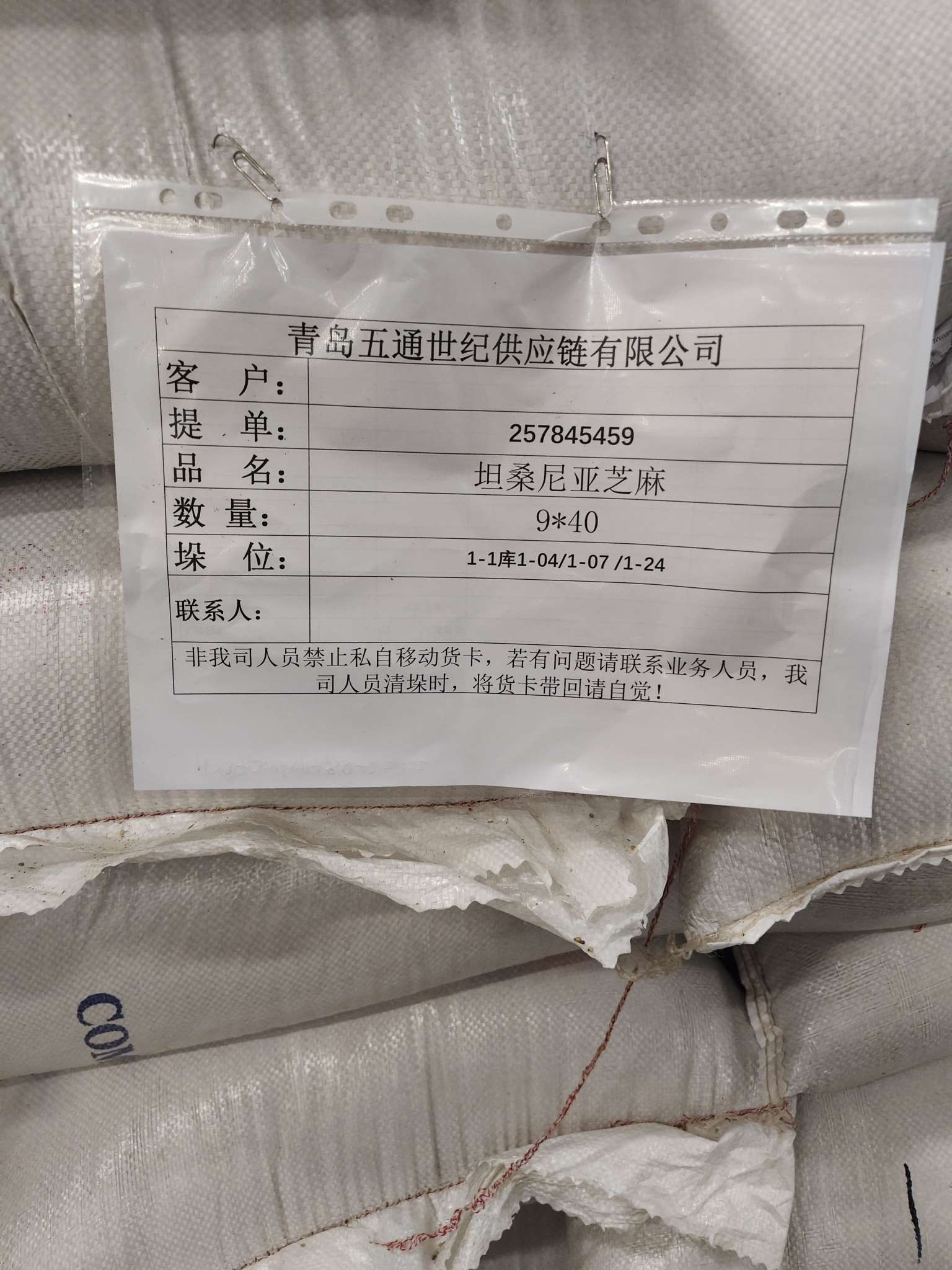 犀牛中国青岛一号交割仓坦桑一级白芝麻
